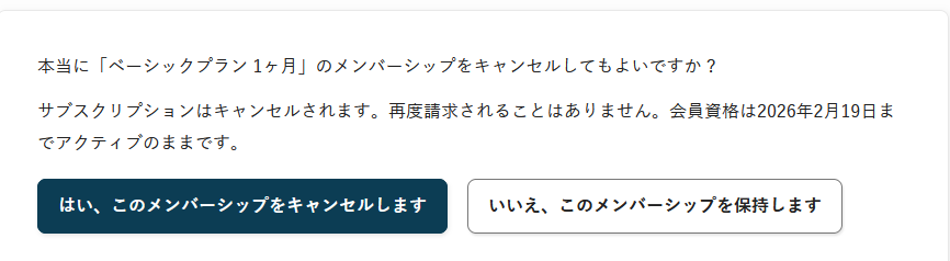 会員メニュー>メンバーシップアカウントにある「自分のメンバーシップ」からキャンセルすることで退会します。
